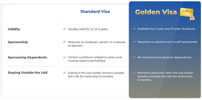 Difference Between a Standard Visa and Golden Visa in the UAE